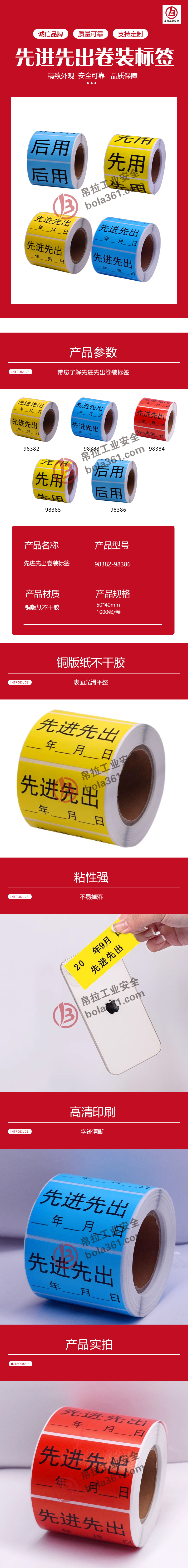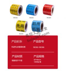 首页> 安全法规合规标识> 提示标识> 先进先出卷装标签 铜版纸不干胶 1000张/卷 黄色 50×40mm