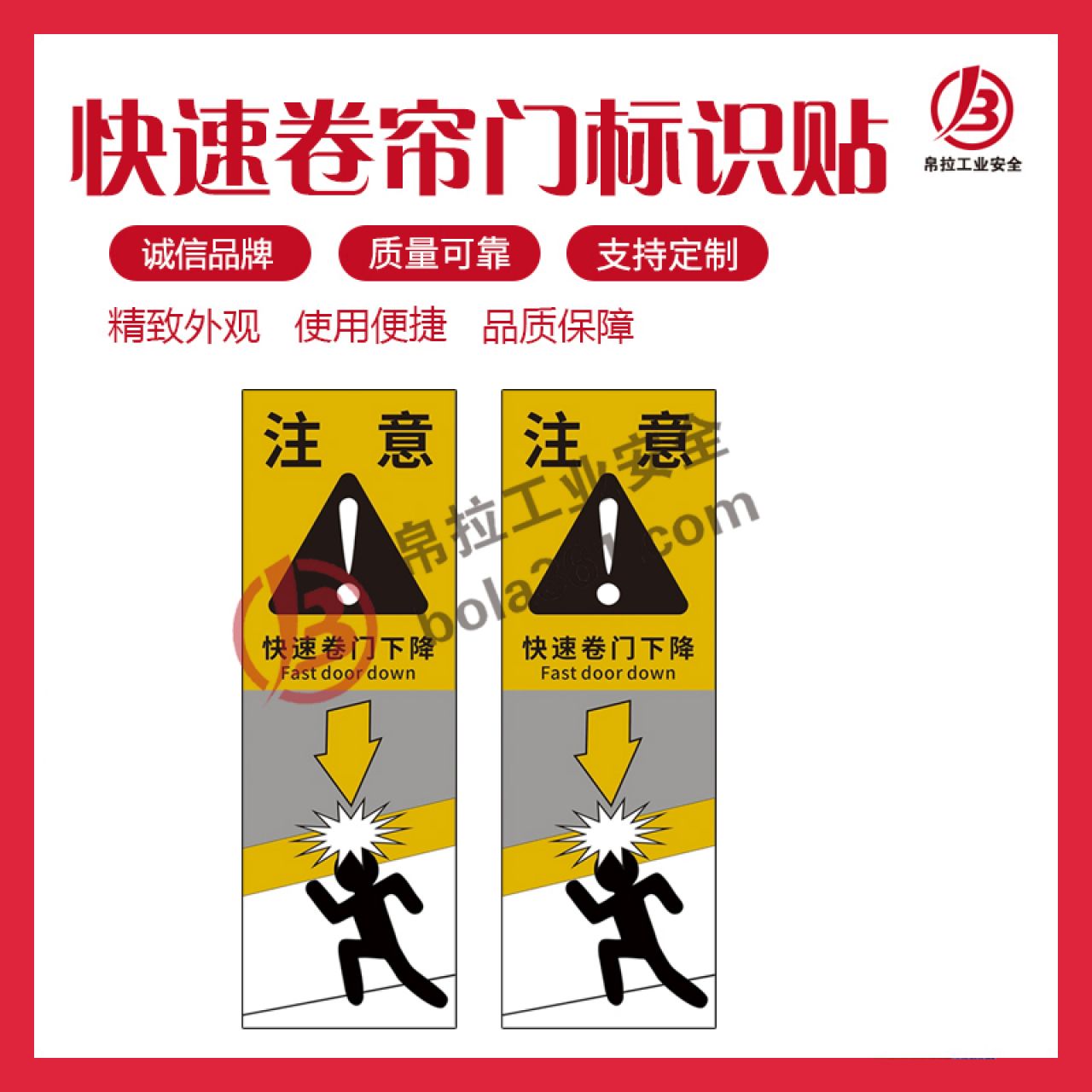 快速卷帘门标识贴 PP背胶贴纸 100×300mm 5张/包