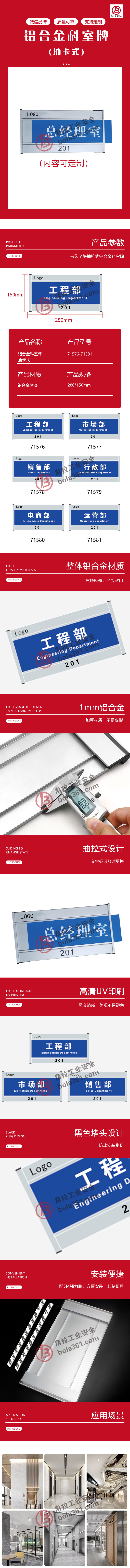 抽拉式铝合金科室牌 1mm铝合金 280×150mm