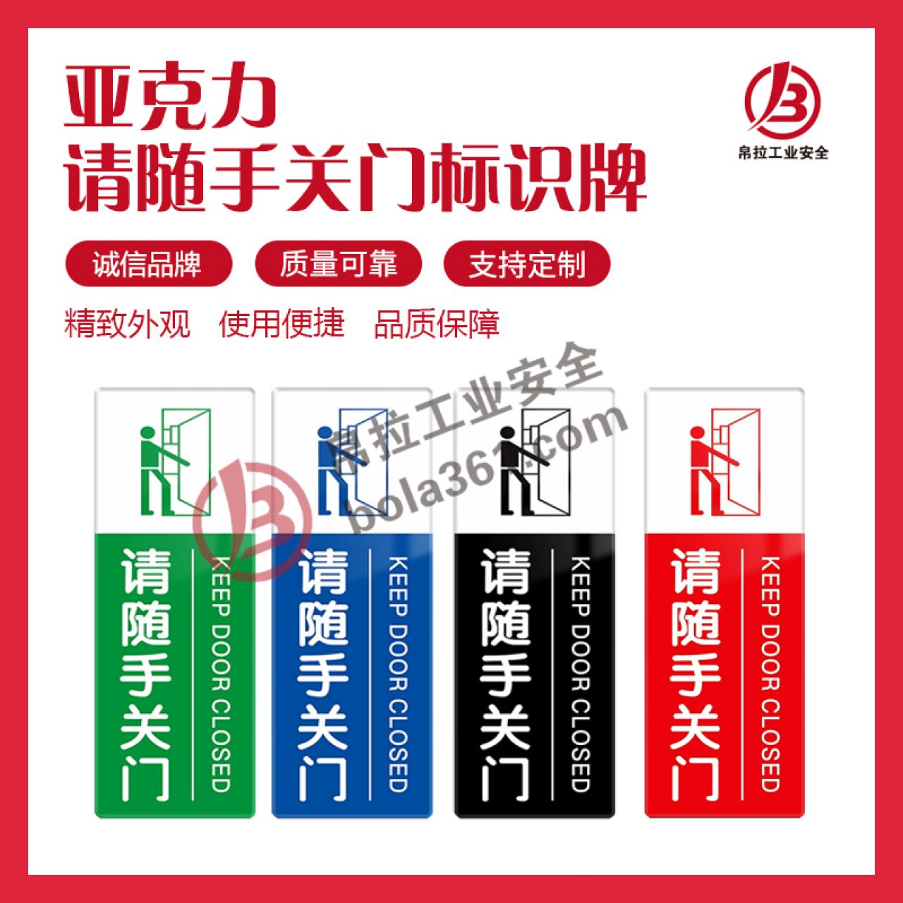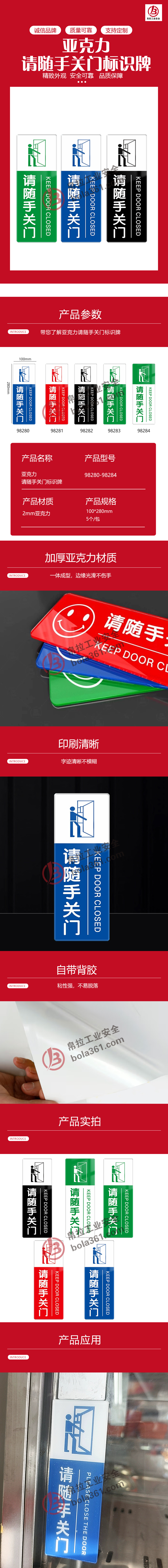 首页> 安全法规合规标识> 提示标识> 亚克力请随手关门标识牌 5个/包 上白下蓝98280 100×280mm