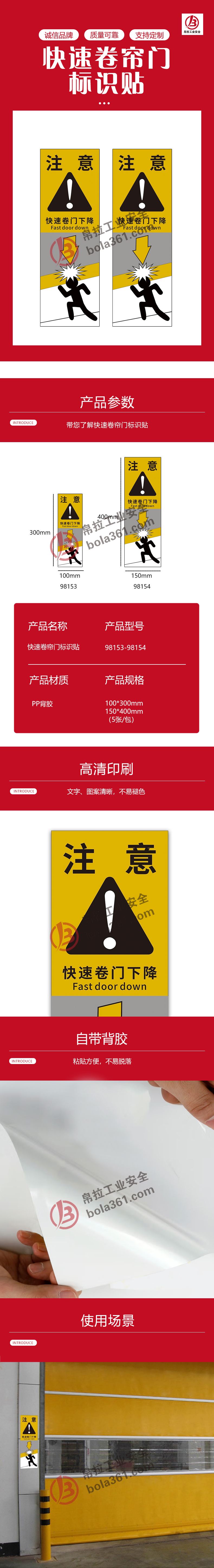 快速卷帘门标识贴 PP背胶贴纸 100×300mm 5张/包