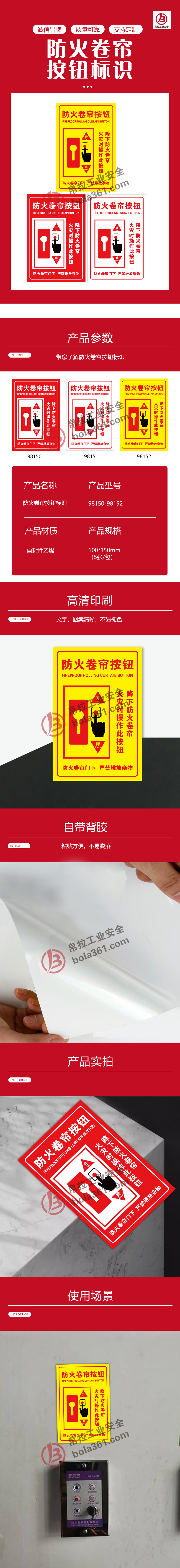 防火卷帘按钮标识 自粘性乙烯 100×150mm 红色98150 5张/包