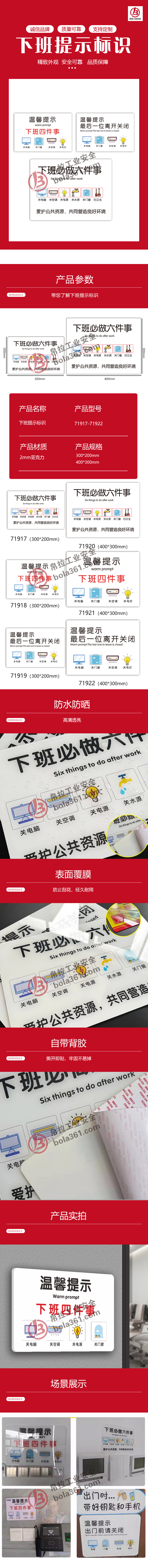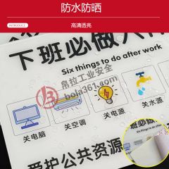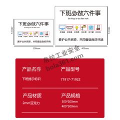 首页> 安全法规合规标识> 提示标识> 下班提示标识 2mm亚克力 下班必做六件事 300×200mm