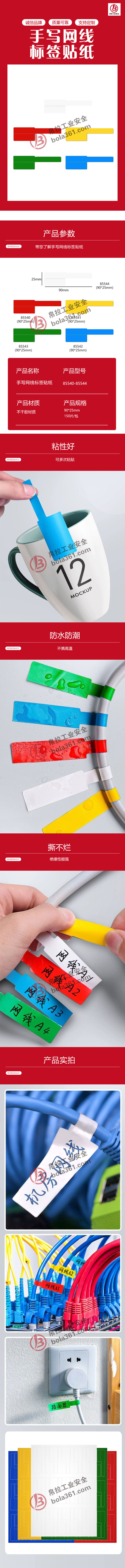 首页> 安全法规合规标识> 提示标识> 手写网线标签贴纸 不干胶 30个/张,15张/包 红色 90×25mm