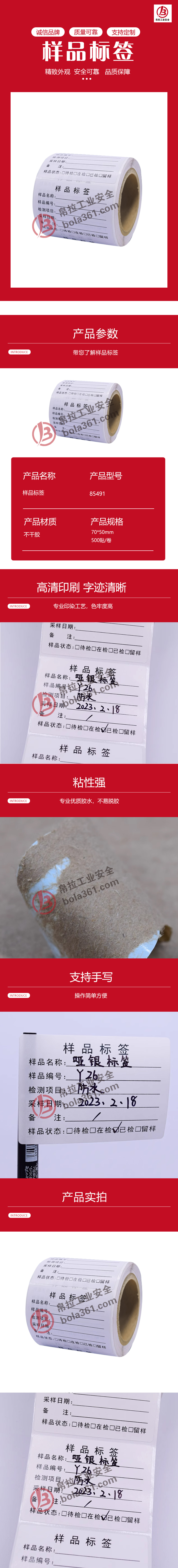 首页> 安全法规合规标识> 提示标识> 样品标签85491 不干胶 70×50mm 500贴/卷