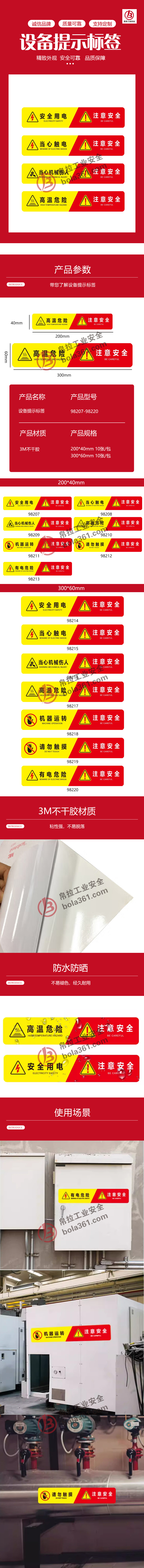 设备标签 3M自粘性乙烯不干胶 10张/包 安全用电注意安全 200×40mm