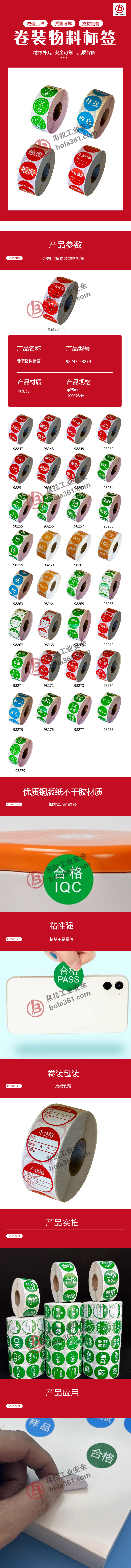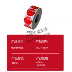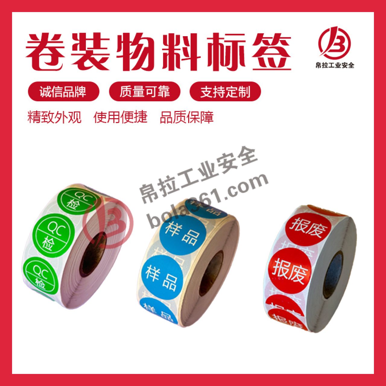 首页> 安全法规合规标识> 提示标识> 卷装物料标签 铜版纸不干胶 直径25mm 1000贴/包 98247不良品(红色)