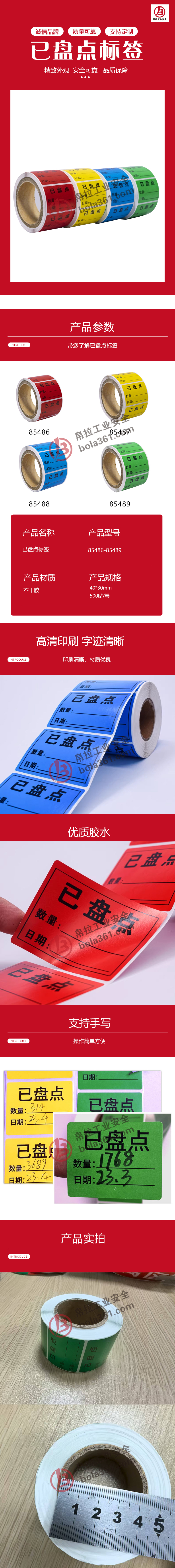 首页> 安全法规合规标识> 提示标识> 已盘点标签3卷起订 不干胶 500贴/卷 红色 卷 40×30mm