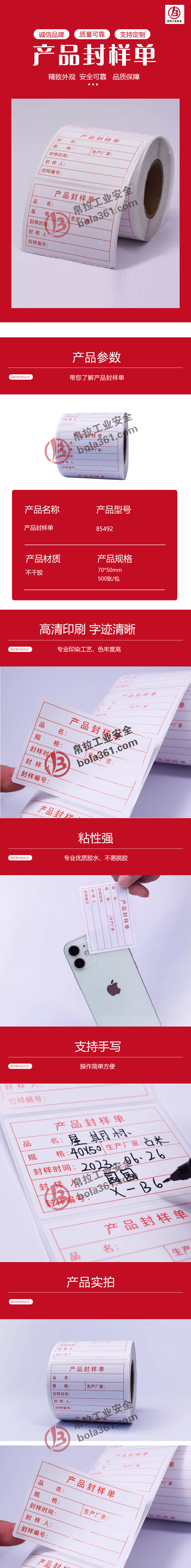首页> 安全法规合规标识> 提示标识> 产品封样单 不干胶 70×50mm 500贴/包 70×50mm