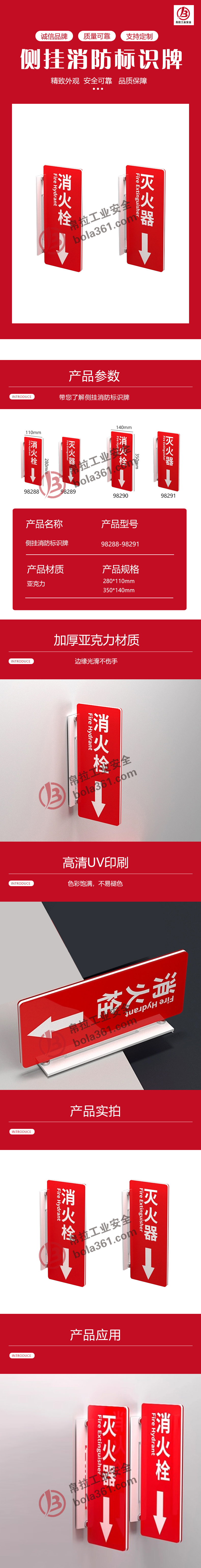 侧挂消防标识牌 亚克力材质 280×110mm 消火栓